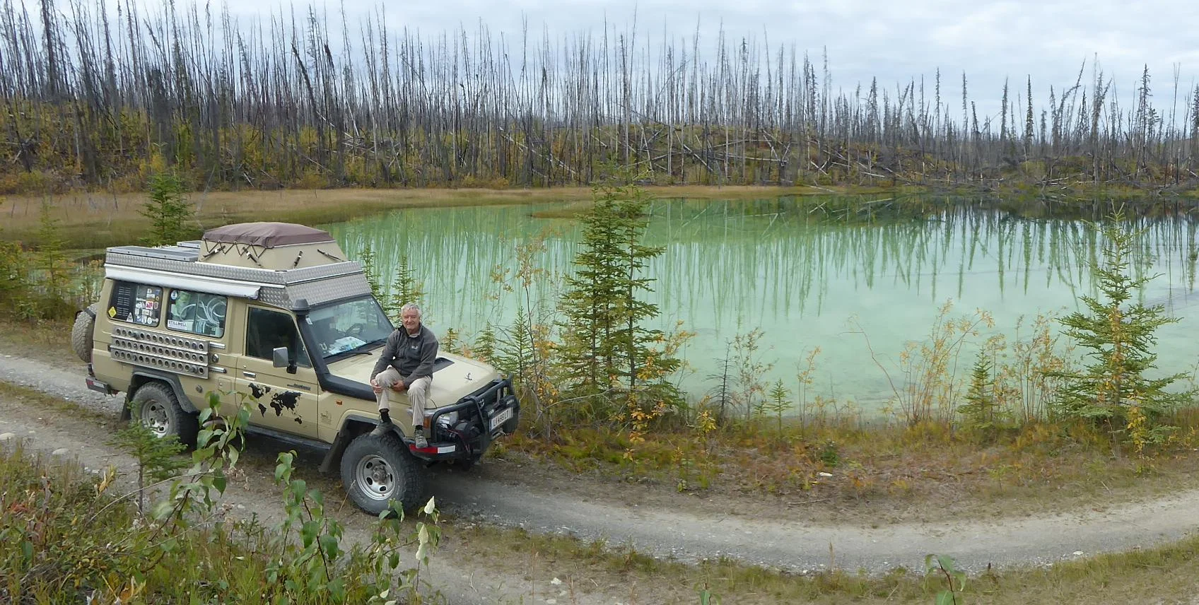 Canada in general is a safe country to travel. Sadly, in June this year three overlanders in two separate incidents were murdered in Yukon and British Columbia. Eventually the perpetrators committed suicide when hunted down by the police. We coincidently passed the place where one murder took place. Candles and flowers remind of this heinous crime. We too stoped in order to show respect to the deceased. As we had been driving through the region during the time of the killings, we were particular shocked and worried by that events.