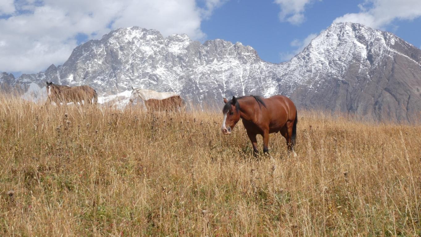 The Adishchaia river should best be crossed in the morning as, due to the melting of the glacier during the day, the water level rises significantly in the afternoon. This is also the reason why most travelers walk the tour from Mestia to Ushguli and not the other way. One can either wade the river or invest € 8 to ride across the river on one of the available horses. We decided to take the horse.